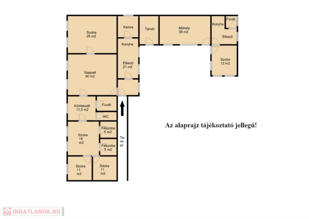 Egy nappali, négy szoba valamint 2 fél szobával rendelkezik, ezeken felül megtalálhatunk kamrát, közlekedőt, külön wc-t és fürdőt, konyhát, étkezőt valamint kamrát is.