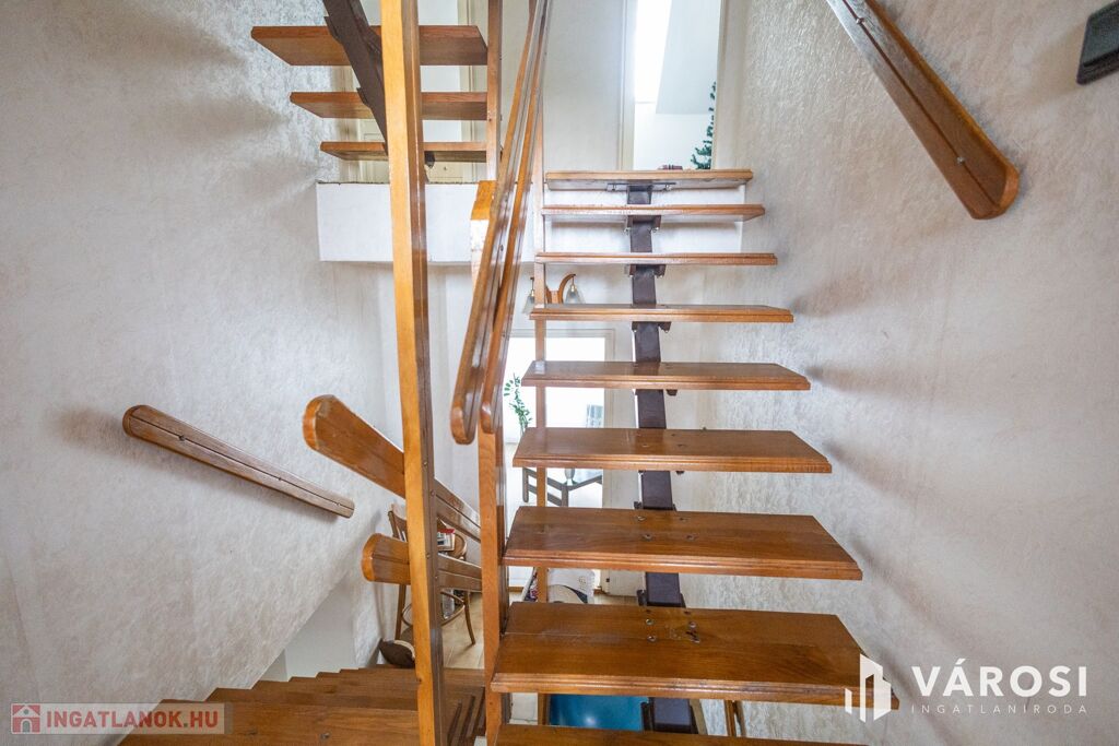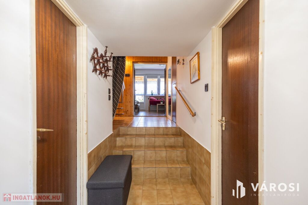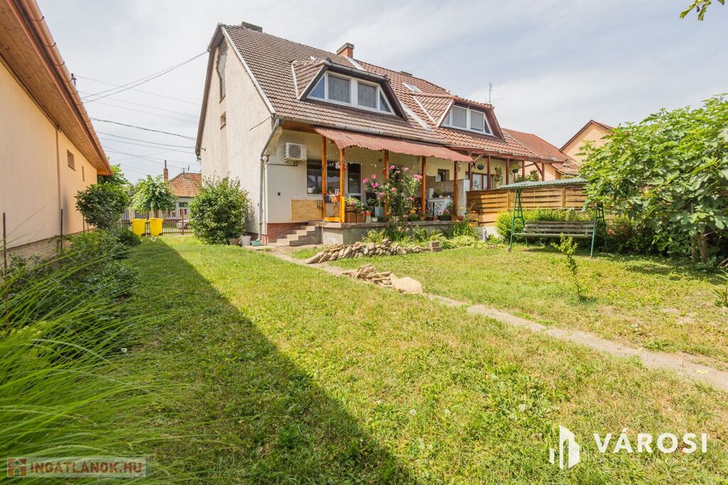Erre az egyedi elrendezésű házra ez nagyon igaz, hiszen az ingatlanban 2 emelet és 2 félemelet is található, így a szobákban élvezhetjük a csendet és nyugalmat, amíg a nappaliban és az étkezőben zajlik a családi, baráti összejövetel. Az ingatlanban minden helyet kapott, hiszen az étkezővel és kamrával felszerelt konyha mellett 4 szoba, 2 fürdőszoba, külön WC, kazánház, gardrób és garázs is. Ezek mellett lehetőség van a padlástér beépítésére is. A ház alapterülete 148 nm, betonalapra tégla falazattal épült, 2017-ben az ablakok műanyagra lettek cserélve, illetve egy hűtésre és fűtésre is alkalmas klíma lett felszerelve. Az otthon melegéről gázkazánról működtetett padlófűtés gondoskodik minden szinten. A kert alapterülete 381 nm, melyhez egy tágas fedett terasz biztosít kertkapcsolatot, emellett egy szerszámtároló és egy fúrott kút is helyet kapott.