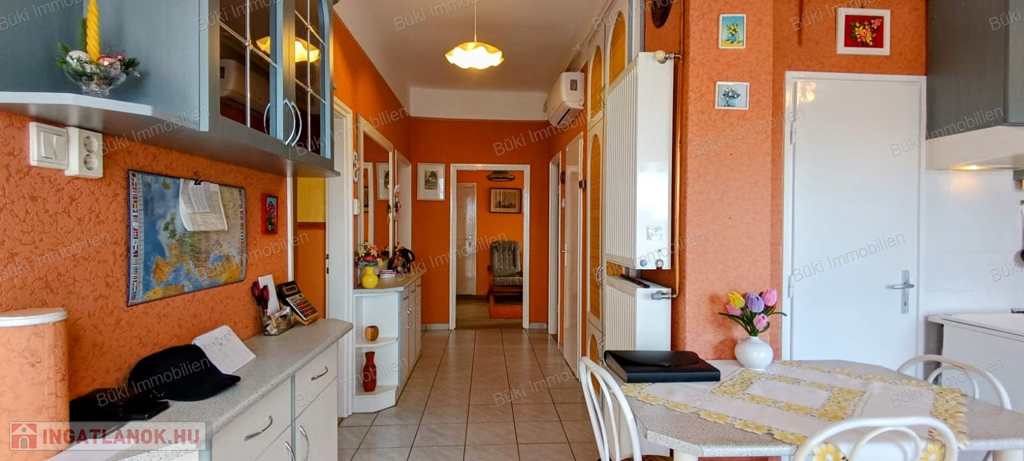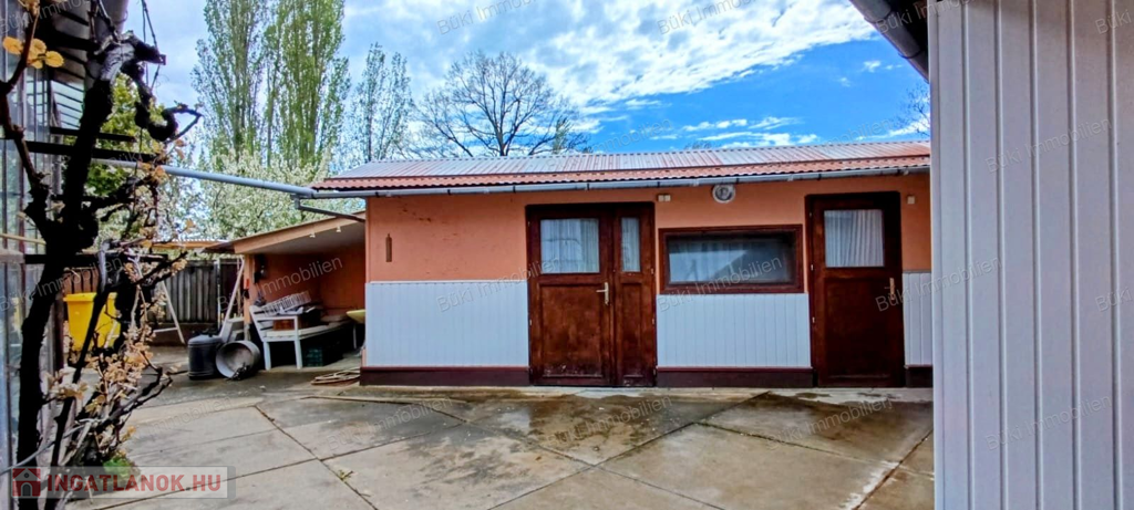 Az épület a telek közepén van, két utcára nyílik az utcán is csümölcs fák díszítik, mindkét oldalon aszfaltozott úttal és kialakított parkolókkal, így a megközelítés kényelmes és kulturált. A fűtött garázs külön öröm, főleg télen, amikor jól esik, hogy az autó nem a hidegben vár. A fűtésről gázkazán és vegyes tüzelésű kazán is gondoskodik, és az eladó még kb. 15 m³ tűzifát is ajándékba ad – így a télre máris fel van készülve az új tulajdonos. Nyáron sem kell aggódni: a ház klímával felszerelt, a nyílászárók korszerűek, hőszigeteltek, az épületet pedig 7 cm vastag szigetelés védi. Mindez nemcsak kényelmet, hanem alacsony rezsit is jelent.