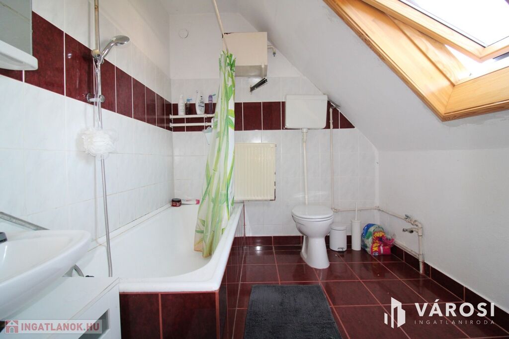 A felső szinten megtalálható egy fürdő+WC, 3 hálószoba, közlekedő.