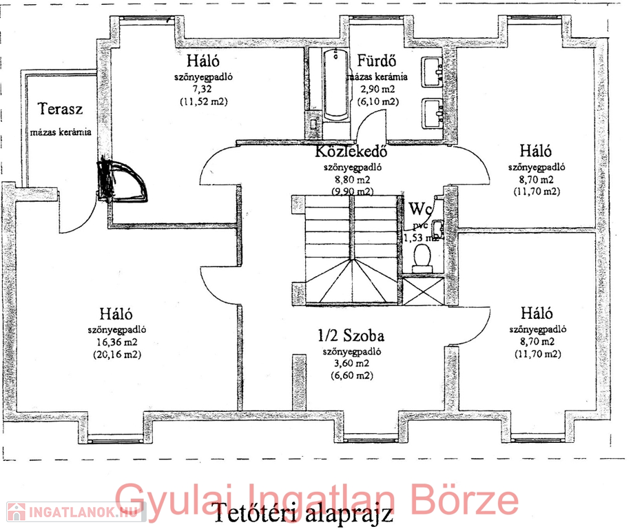Gyulán Törökzugi zöldövezetben - kertvárosi részen, jó elrendezésű, nappali + 5 szobás, 151 m2 alapterületű,