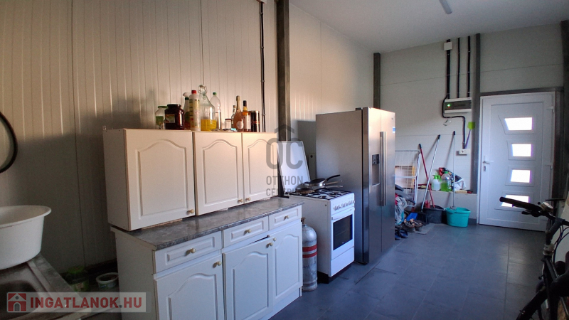 A 140 nm-es könnyűszerkezetes épület az udvar középső részen kiváló lehetőség vállalkozás, s egyéb más tevékenység végzéséhez. Összközműves, akár csak a családi ház!
