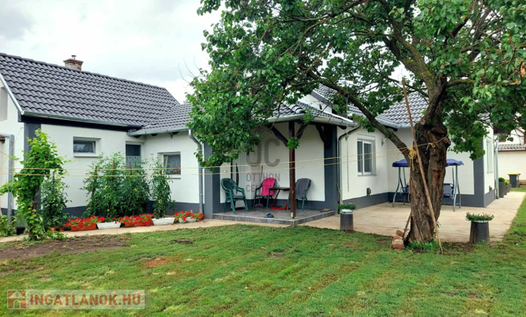Hajdúböszörmény csendes, mégis központhoz közeli részén eladó egy 87 m²-es, 2 szobás, amerikai konyhás felújított családi ház, 1003 m²-es rendezett telken.