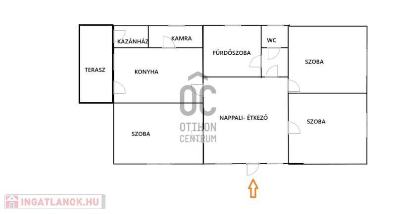 - konyha, nappali, 3 hálószoba, fürdőszoba, kamra,