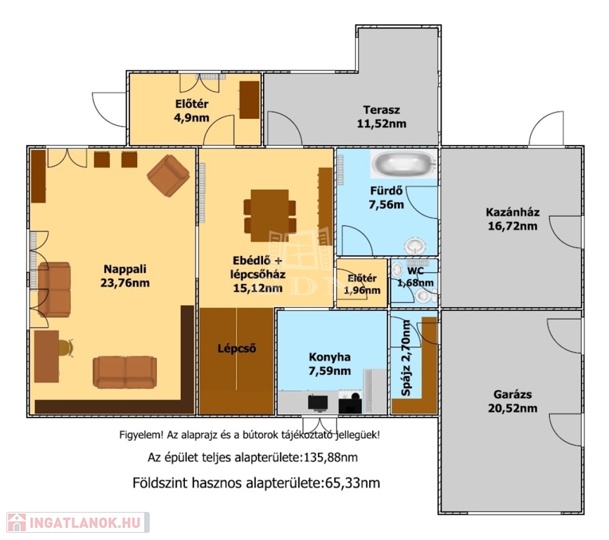 - garázs (20,52nm),