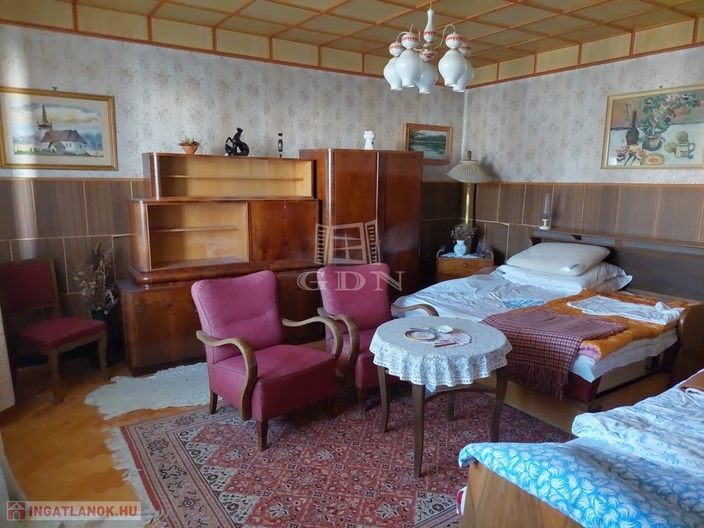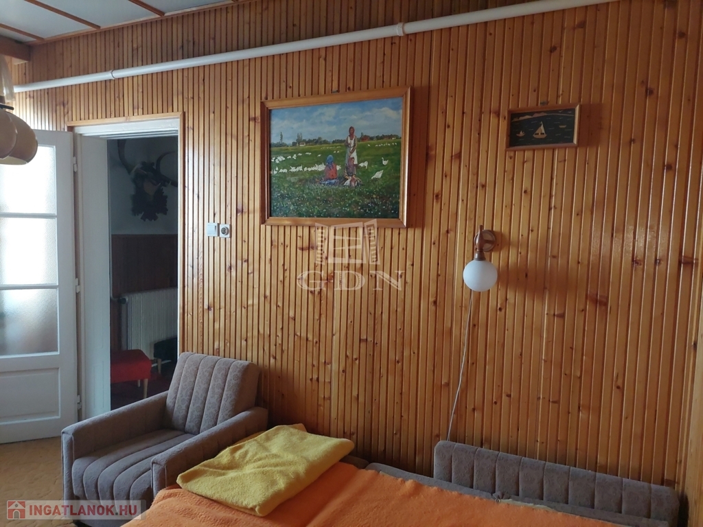 A főépület mögött különálló lakóépületként még van egy szoba, konyha, garázs helységekből álló lakóépület, mely szükség esetén akár különálló lakhatást is biztosíthat. A parkosított udvarra autó beálló út vezet, így akár több autóval is be lehet állni az udvarra.
