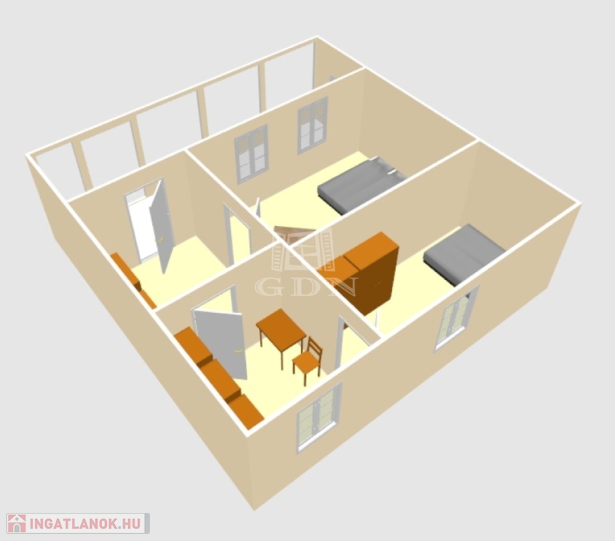 - 2 szoba,