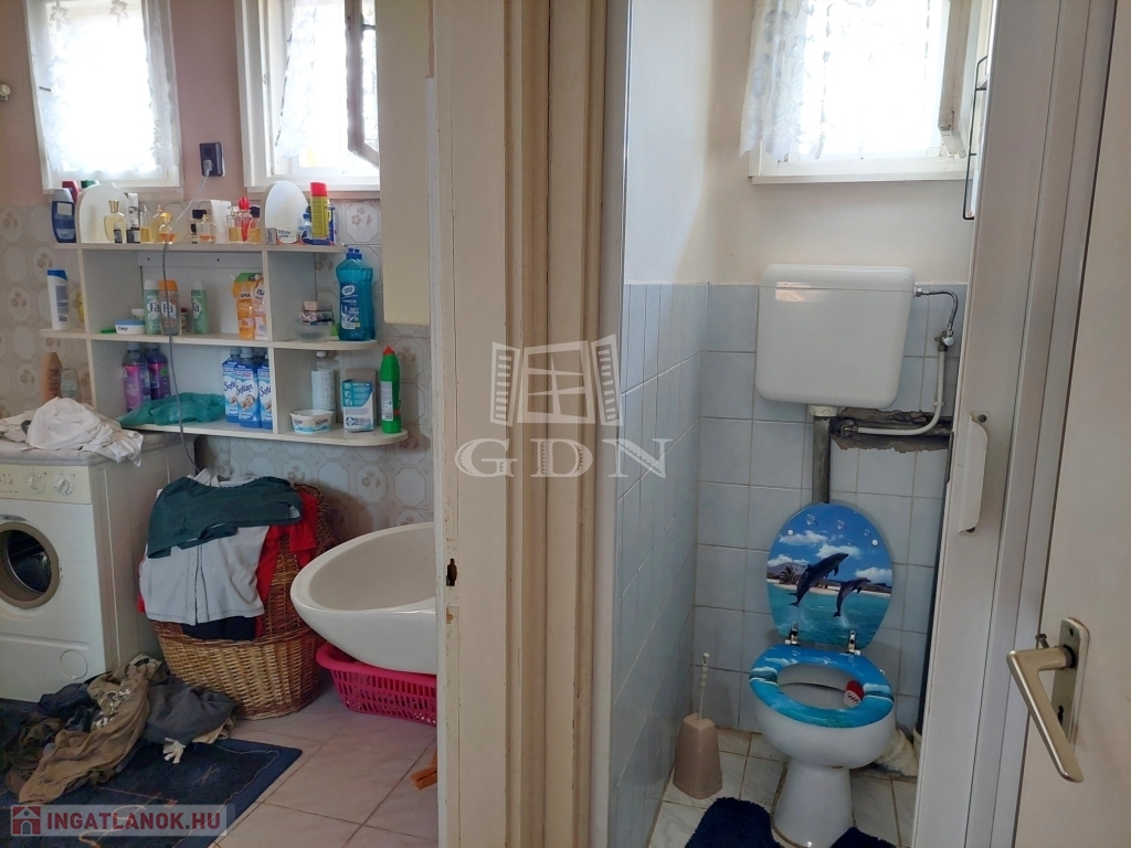 A kertes ház 1986-ban épült, beton alapzattal, részben tégla, részben szilikát falazattal. A tetőszerkezete jó állapotú nyeregtető, cserépfedéssel ellátva. A ház fűtése gázkazánnal és vegyes tüzelésű kazánnal megoldott radiátoros központi fűtés, továbbá több cserépkályha és klíma is rendelkezésre áll. Az épületben a földszinten 3 autónak is elegendő garázs kapott helyet, mely az utca frontjához képest ki van emelve, így nem folyik be a víz, mint a süllyesztett garázsoknál. A lakóépületnek több különálló bejárata van, két generációs házként is hasznosítható.