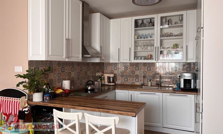 - modern gépekkel szerelt amerikai konyha (beépítésre került sütő, indukciós főzőlap, mikró, páraelszívó,