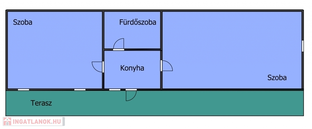Helyiségek: 2 szoba, Étkezőkonyha, Fürdőszoba, Terasz