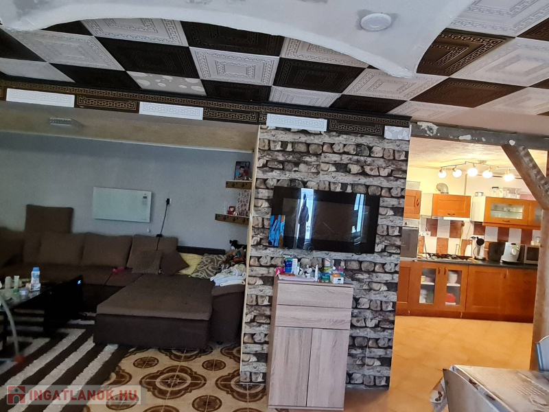 Hajdúsámson központjában, aszfaltozott utcában, összközműves, 1300 nm-es telken eladó, 120 nm-es, szigetelt, 3 szobás, műanyag nyílászárós, tégla építésű, gáz-cirkó fűtéses, 2 fürdőszobás családi ház.