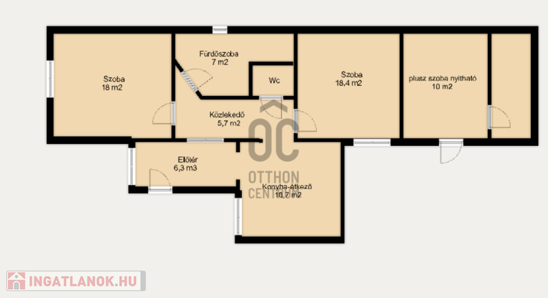 - kettő szoba, viszont pici bontással még egy kialakítható