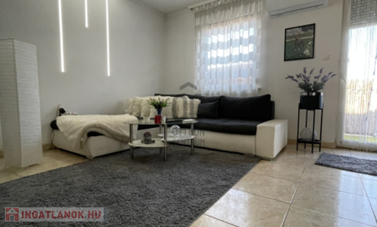 Hajdúsámson–Sámsonkertben eladó, egy 56nm-es, 2szobás, nappalis sorházi lakás, garázzsal.