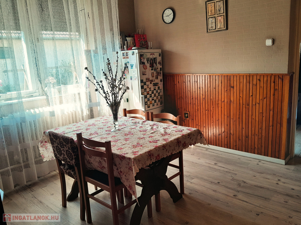 Eladó egy szilikát falazatú családi ház, 100 négyzetméter hasznos alapterületen. Az ingatlan 1000 négyzetméteres telken helyezkedik el. A lakás elosztása 4 szobából, külön étkezőből és konyhából áll. Két fürdőszoba található benne, valamint külön kazánház és pince tartozik a házhoz. A fűtést vegyes tüzelésű kazán biztosítja, radiátoros hőleadással. A nyílászárók fából készültek. A tetőtér beépített. Remek helyen, csendes környéken közel a központhoz.