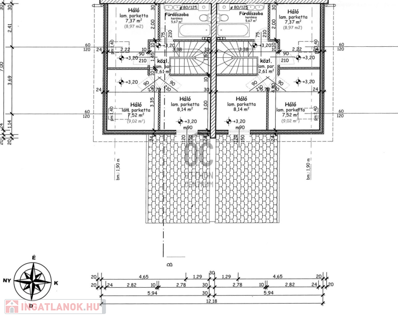 - nettó lakótér 76 m2, mely magában foglal 4 lakószobát, 2 fürdőszobát és nappalit külön