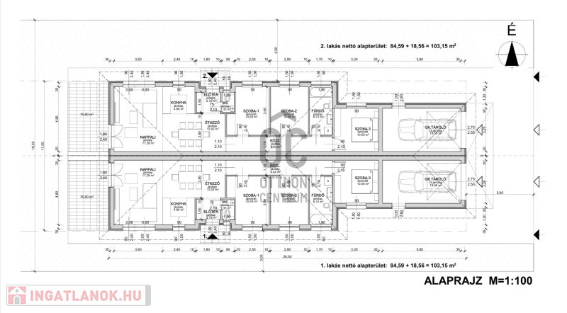 - 84,59 m² nettó hasznos lakóterület + 18,56 m²-es garázs