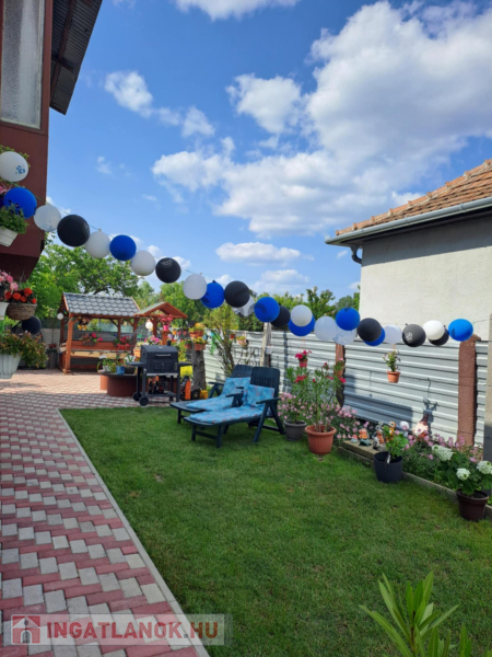 Hajdúsámson központi részén, egy csendes átmenő forgalomtól mentes utcában eladásra kínálok egy 1988-ban épült 764 m²-es telken álló nettó 121 m2 alapterületű + 85 m2 szuterénes családi házat.