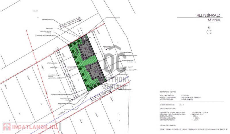 -beépítése max 30%, zöldfelület min. 50%