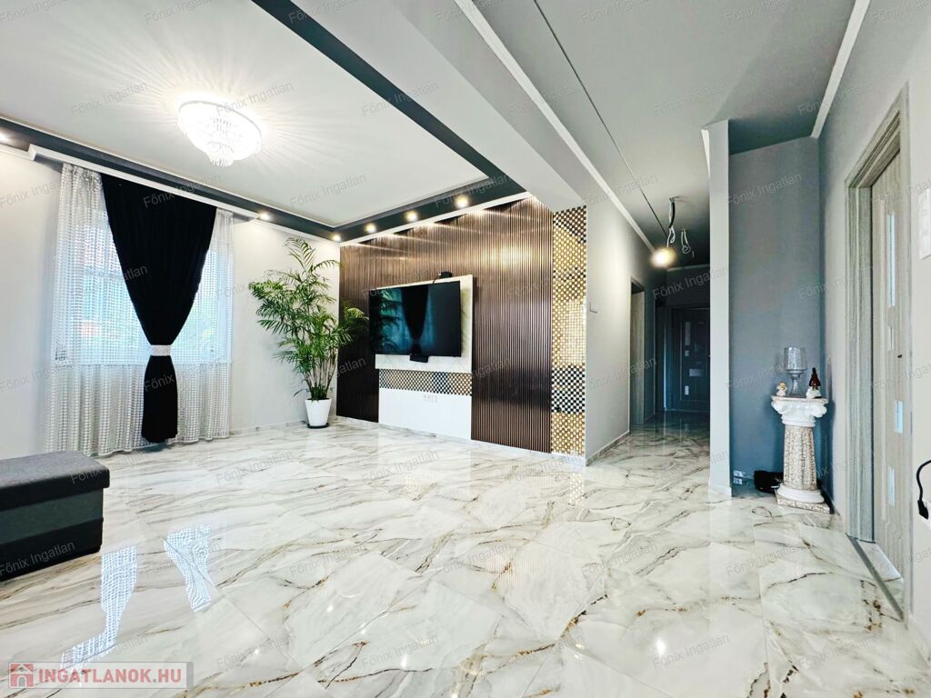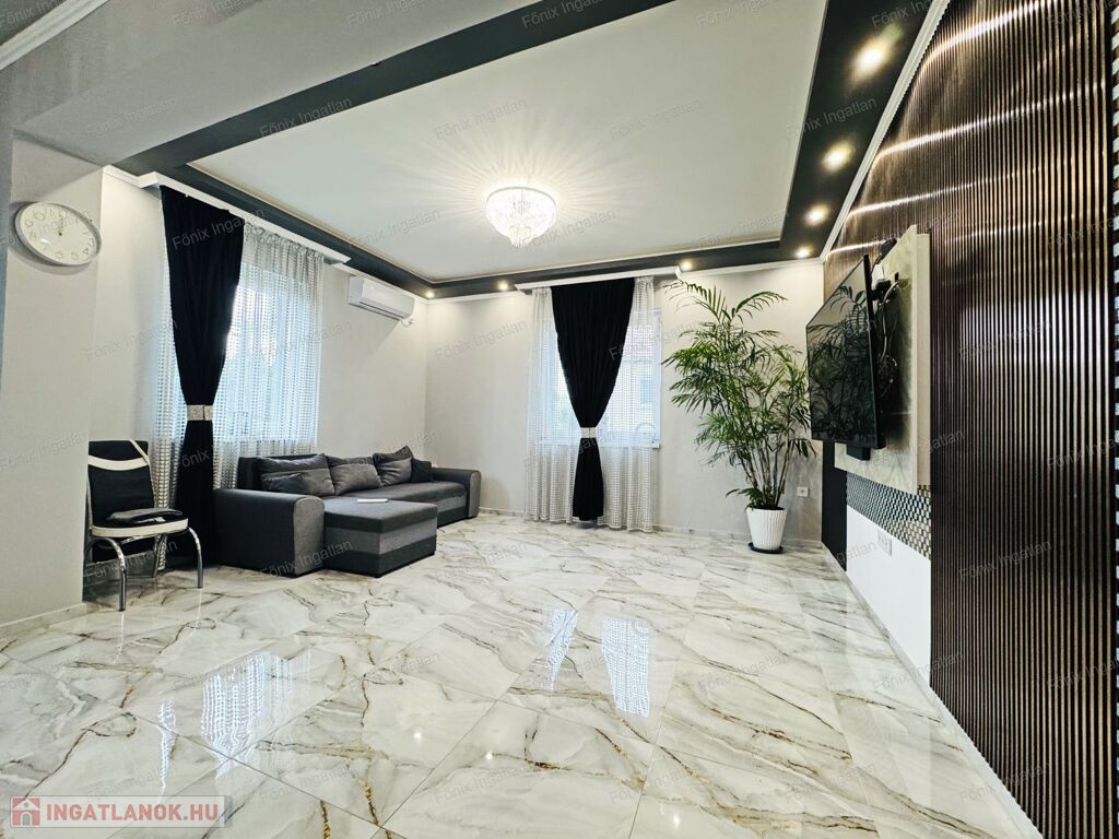 Hajdúsámson belvárosi szakaszán, aszfaltozott, összközműves utcában, új építésű, egyszintes, 3 hálószobás, modern elrendezésű ikerház, saját telekkel, garázzsal eladó.