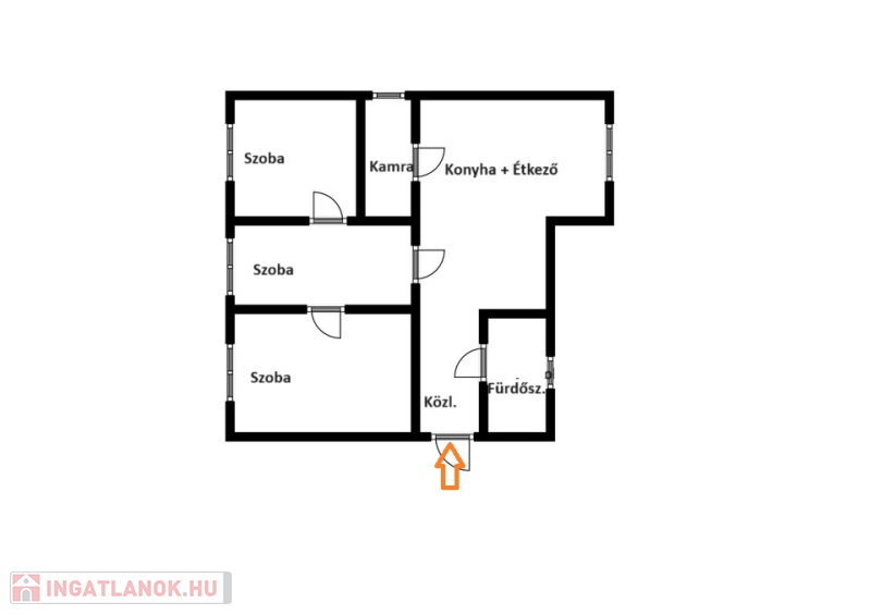 - 3 szoba + étkezőkonyha