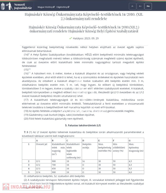 - "LF" építési övezet