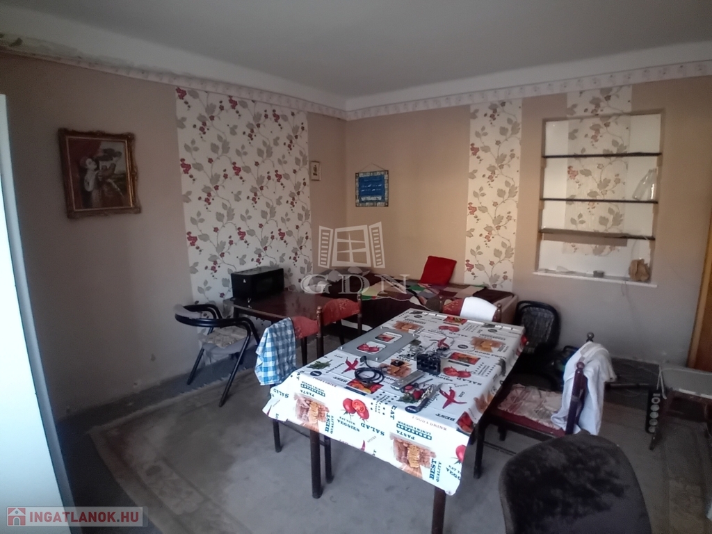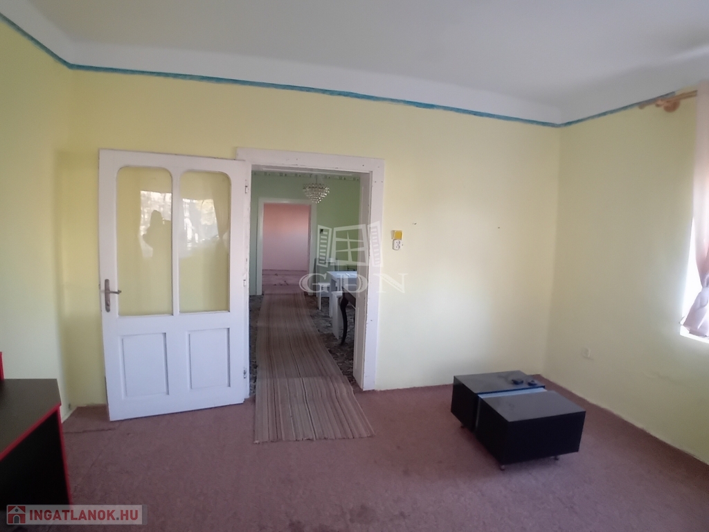Lakrész: 131m2-en, 4 szoba, fürdőszoba, konyha+ebédlő, világos, széles folyosó. Az utcafronton új műanyag nyílászárókkal.