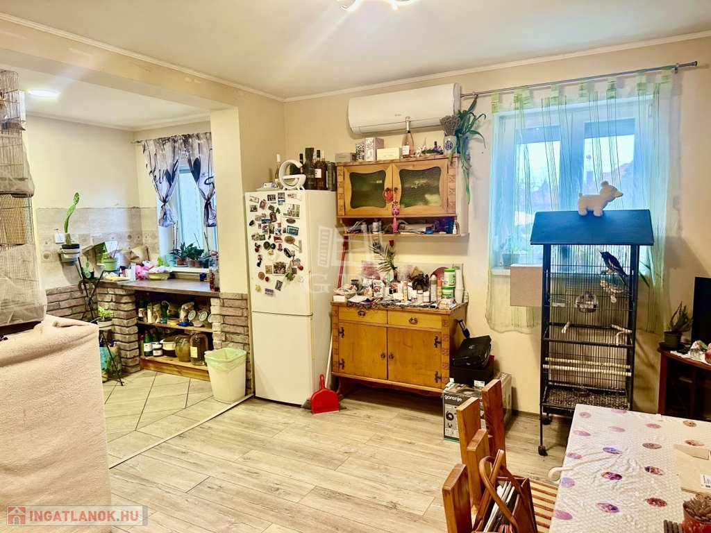 A fő épület mely 90 m2 egy tégla szerkezetű Kádár kocka. 2017-ben teljeskörűen fel lett újítva. A villany és víz vezetékek cserélve lettek, a nyílászárók redőnnyel és szúnyoghálóval ellátott műanyag ablakok. A ház melegéről gáz cirkó gondoskodik, de van egy gyönyörű cserépkályha is, mely a hűvösebb napokon további meleget biztosít, valamint, hűtő-fűtő klímával is ellátott! A mennyezet, gipszkarton segítségével alacsonyabbra lett hozva, melyre szigetelés is került.
