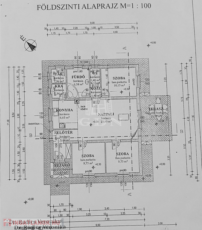 Tájolása: D-K-i, méretek és elrendezés az alaprajzon látható.