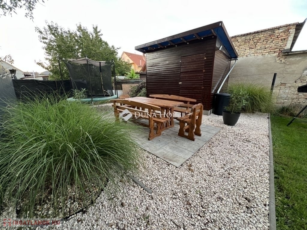 A szép, gondozott kert ideális helyszín a pihenéshez, kerti partikhoz . A zárt udvar elektromos kapuval ellátott, és autóbeálló, valamint különálló kinti tároló is tartozik az ingatlanhoz.