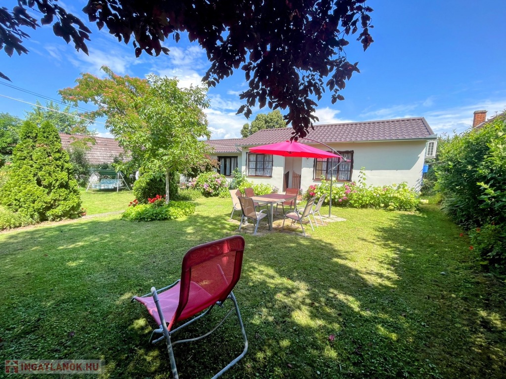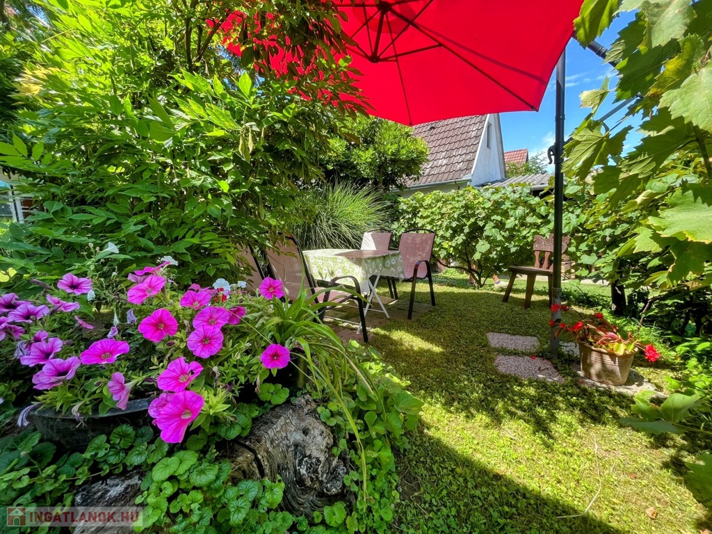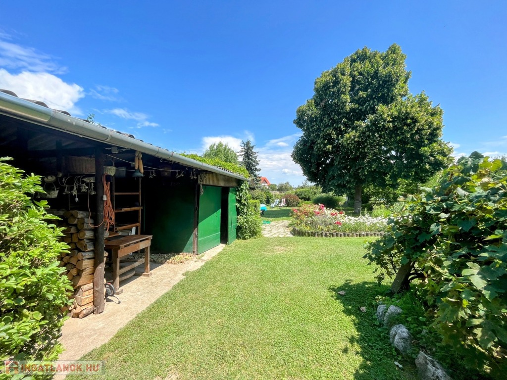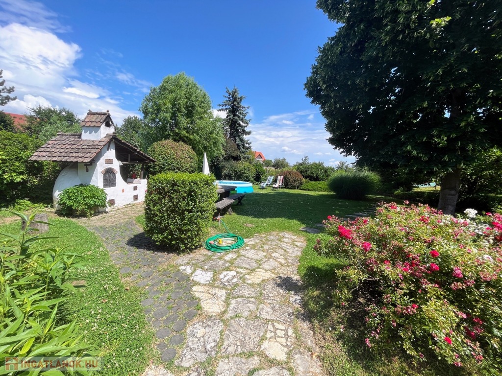 A telek nagyobb része folyamatosan karbantartott és parkosított. Ezen a részen található az aranyhalakkal teli kerti tó is. Hátrébb nagy fűszer- és konyhakert elégíti ki a mindennapi zöldség- és fűszerigényt. Természetesen gyümölcsfák is szép számmal találhatóak.