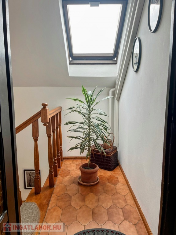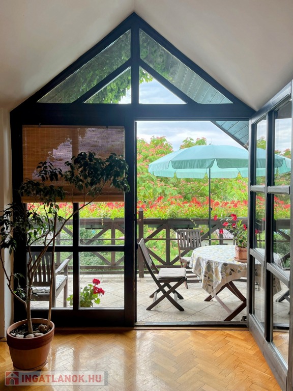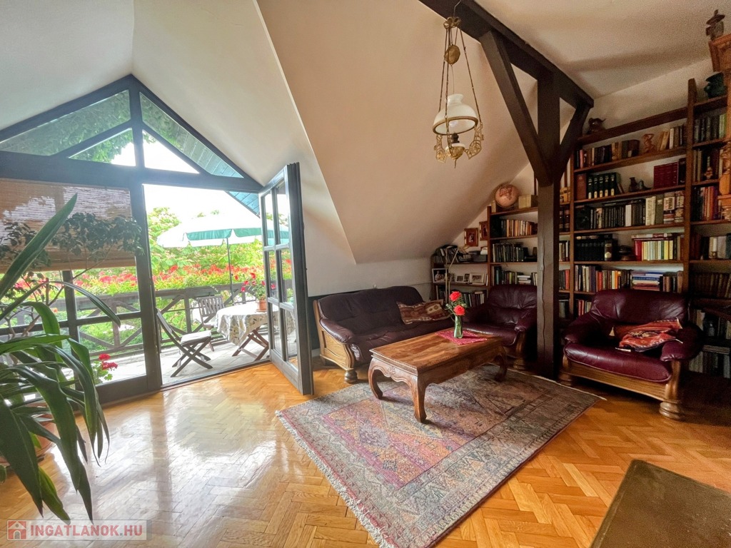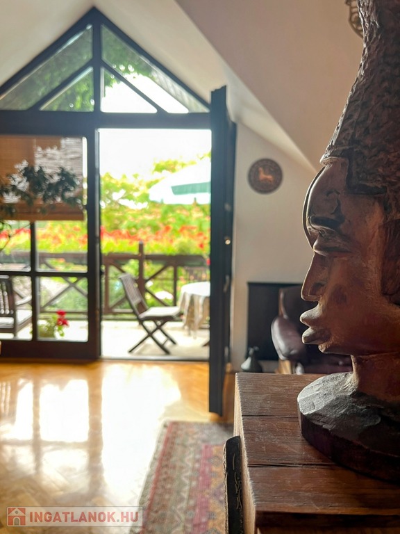 A ház felső szintjéről csodálatos panorámát élvezhet a tulajdonos, főleg a tágas nappaliból nyíló, nagy méretű erkélyről. Érdemes bejárni a házat, a felső nappali nagyon-nagyon hangulatos és fényes.