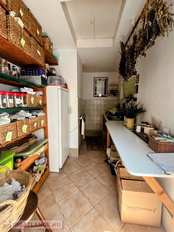 A fészer mögött fűthető mosókonyha van, mely gyönyörűen berendezett, tiszta, mint a ház többi része is.
