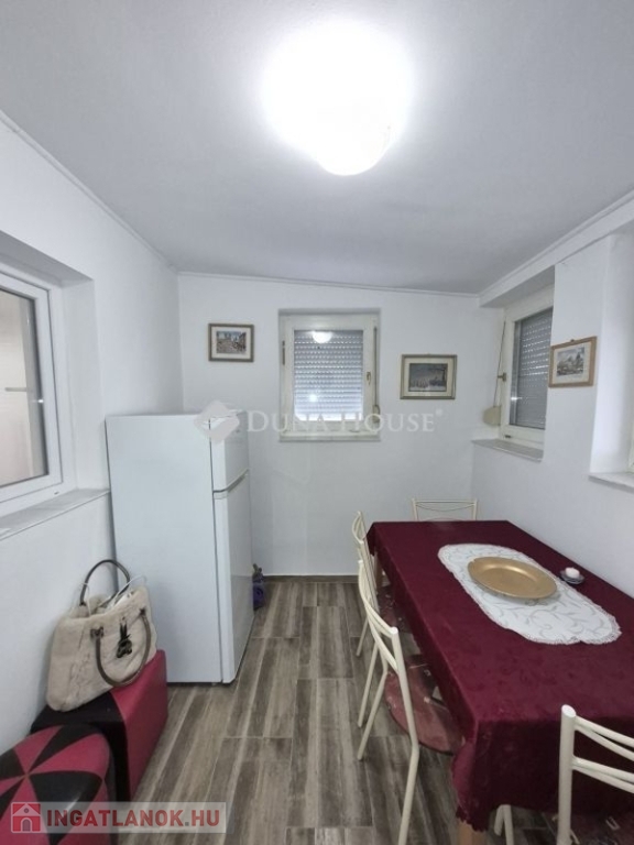 Harkány frekventált nyaralóövezetében a fürdőhöz közel, felújított, állandó lakhatásra alkalmas bruttó 60m2-es, belső két szintes családi ikerház eladó! Az ingatlan 2024-ben került felújításra, melynek során megtörtént a víz- és villanyhálózat cseréje, valamint új ablakok kerültek beépítésre. A ház egy modern, ízlésesen kialakított fürdőszobával és külön zuhanyzóval rendelkezik. Az alsó szinten egy nappali, hálószoba, fürdő- wc-vel, zuhanyzóval valamint egy konyha étkezővel rendelkezik. A nappaliból fa lépcső vezet az emeletre. A felső szinten egy hálószoba, kis társalgó és egy erkély kapott helyet. A fűtést gáz konvektor, klíma, valamint elektromos fűtő panelek biztosítják. A kert 217m2 rendezett, parkosított, a ház hátsó részéről az udvarba kocsival belehet állni. Az ingatlan teljes bútorzattal eladó, tehermentes, azonnal birtokba vehető. Ideális választás állandó lakhatásra vagy akár nyaralónak, befektetésnek is! További információkért keressen bizalommal!