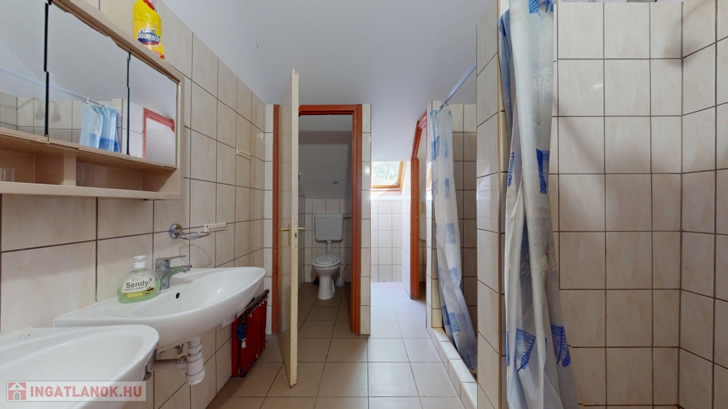 A házban 6 hálószoba és 3 fürdőszoba található – egy a földszinten, kettő az emeleten, köztük egy dupla fürdő. A tetőt Bramac cserép fedi, a hőszigetelt fa nyílászárók pedig hozzájárulnak az energiatakarékossághoz.