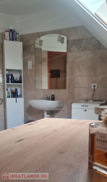 A földszinti közlekedőből jutunk fel az átriumos tetőtérbe, ahol a 3 szoba, 2 félszoba, közlekedő, társalgó, 1 zuhanyzós fürdő vécével áll rendelkezésre. Itt egy fedett erkélyről is élvezhető a panoráma.