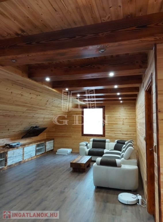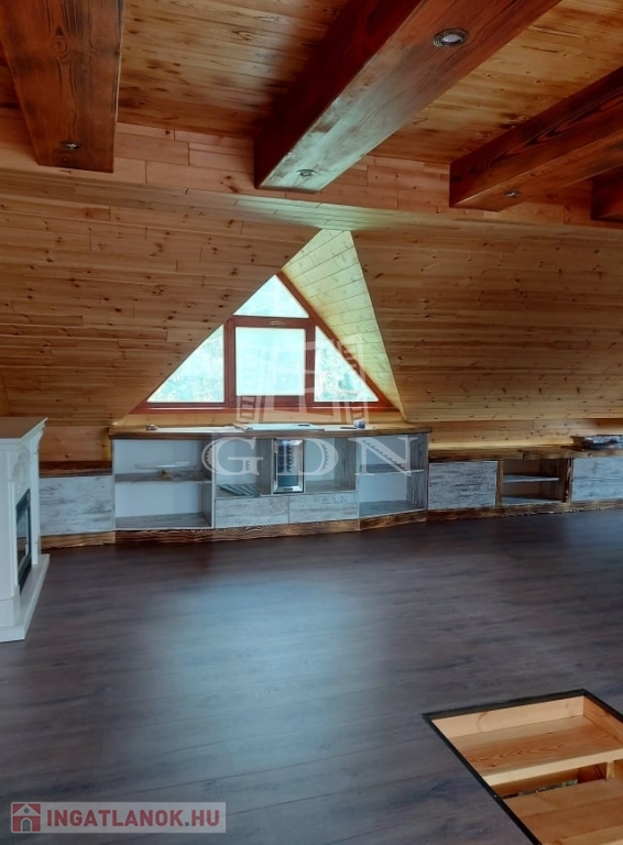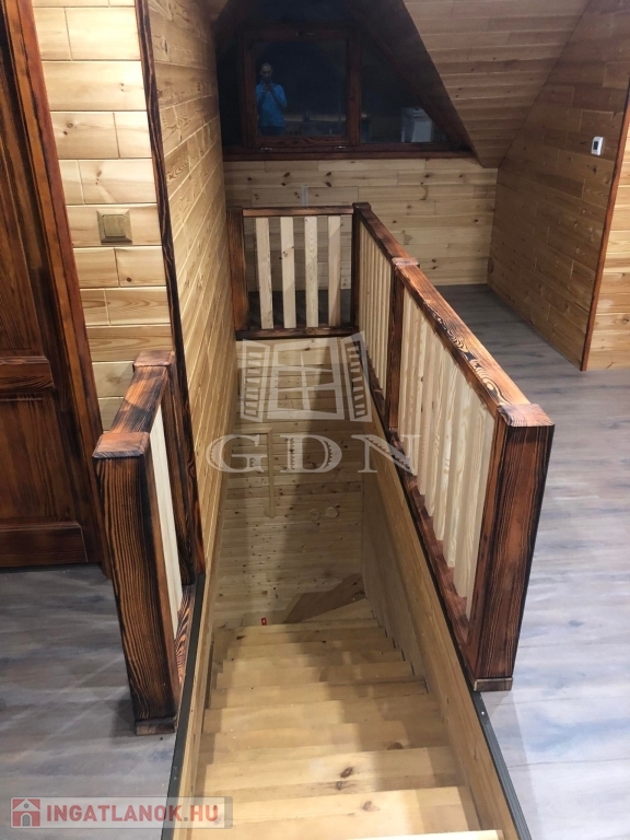 ( masszázskáddal, tusolóval, tv-vel felszerelt ) kettő hálószoba lett kialakítva. Minőségi anyagok beépítésével valósították meg a kreatív ötleteket. A ház fűtése gáz-cirkó kazánnal, kandallóval, infra padlófűtéssel, panellel és villanykandallóval történik. Az ablakok zsalugáterrel, szúnyoghálóval felszereltek. A dupla teraszajtón elektromos aluredőny van. A ház felső szintjét az átalakítás óta nem használták, itt minden új. Az épületet 30 m2-es terasz köti össze a természettel. Ha olyan helyen szeretne élni, pihenni, vállalkozni, ahol meghatározó szerepe van a nyugalomnak, madárcsicsergésnek, kirándulásnak, ide el kell jönni megtekinteni.