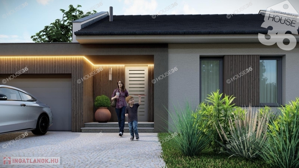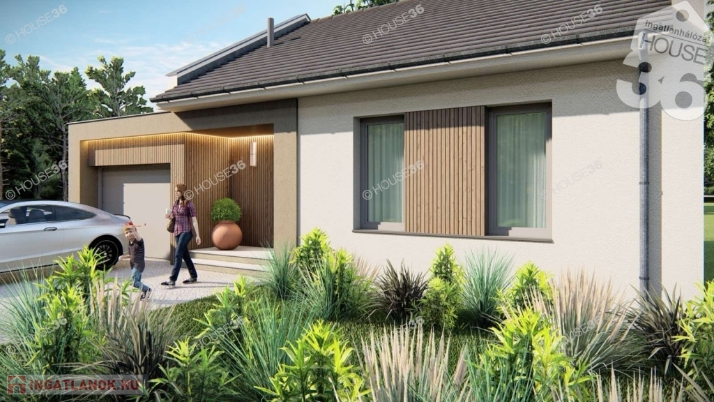 Kiváló elhelyezkedésű, új építésű környéken kínáljuk ezt a90 m2-es, Nappali + 3 szobás prémium kategóriás családi házat, önálló 400 m2-es telken fedett beállóval.