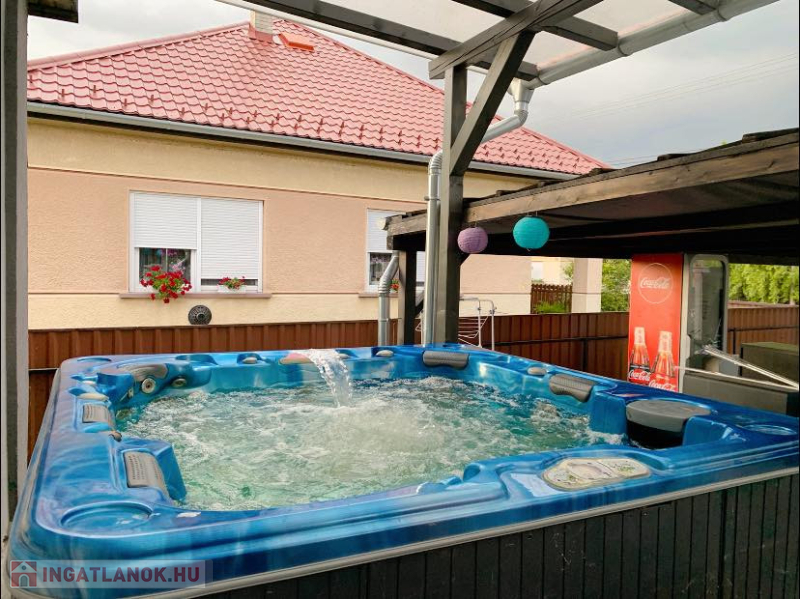 A telken található egy két autó számára fedett autóbeálló, és egy jacuzzi is ,mely a vételár részét képezi.