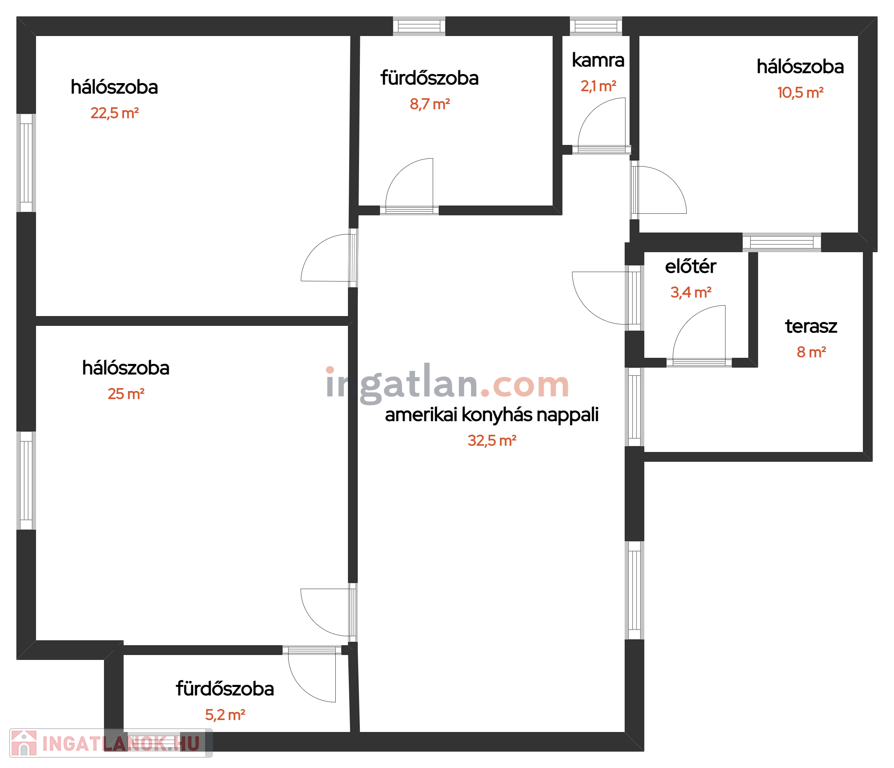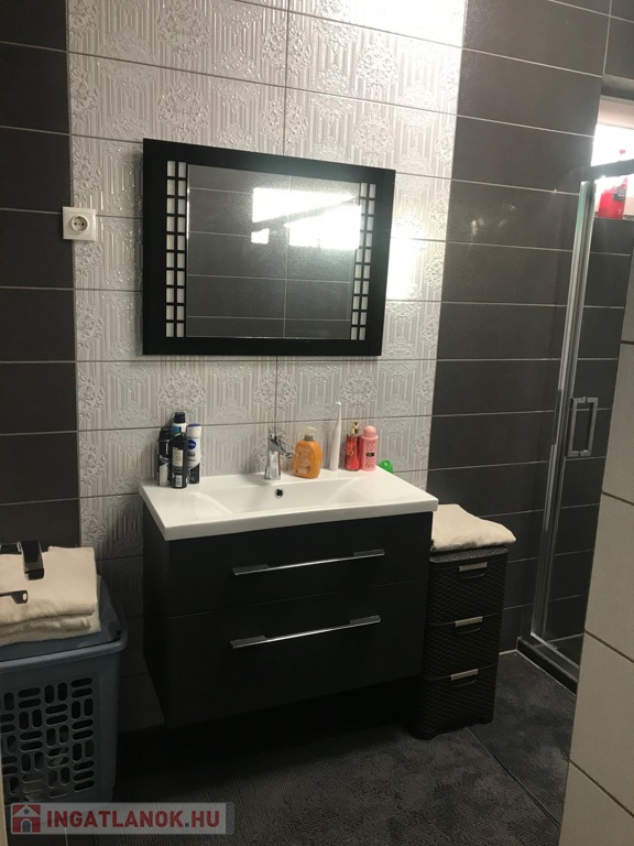 Padlózat: a szobákban melegburkolat ( laminált padló) található. A fürdőszoba, kamra, amerikai konyha, előszoba, terasz hidegburkolattal van ellátva.