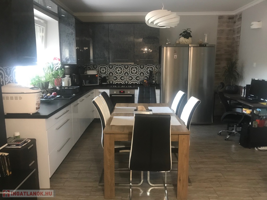 745 m2 a telek teljes területe, amelyből 120 m2 lakóház. Benne 3 db szoba, 2 db fürdőszoba, faltól falig üvegfallal ellátott világos előszoba, amerikai konyhás nappali, kamra, nagy fedett terasz, 3mx3m -es pince viakolor burkolattal. 70 cm-es beton alappal rendelkezik a lakóépület 70 cm széles falazattal, 10 cm-es szigeteléssel ellátva. A fűtés a legkorszerűbb gázcirkó kazánnal megoldott, a szobákban radiátorok melegítenek, a nappaliban és a fürdőszobákban padlófűtéssel ellátott.