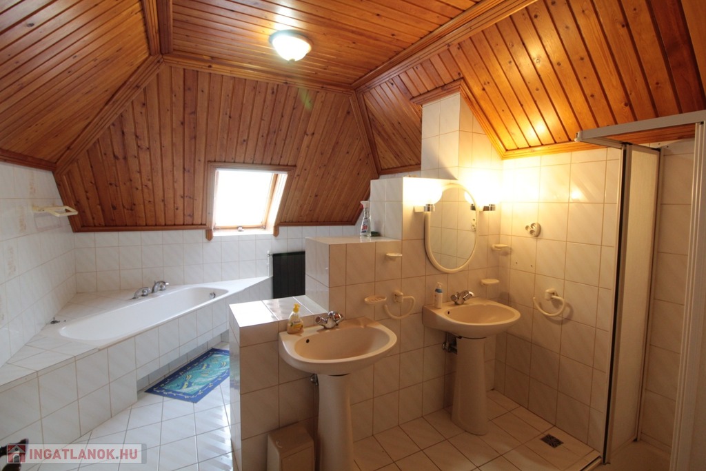 Masszív tölgyfa lépcső vezet az emeleti galériába, ahol egyedi könyvespolcok mellett haladva három szoba, mosókonyha és egy további fürdőszoba (kád, tusoló, WC) található.
