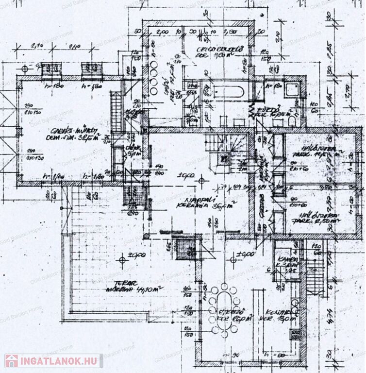 A családi ház két külön bejárattal rendelkezik, az egyik bejáraton az iroda, vagy akár rendelőként használható helyiségek vannak. A belső térből átjárás lehetséges az iroda és a duplagarázs felé is. Hévíz egyik csendes utcájában részben bútorozott, 5 hálószobás, nagy nappalis CSALÁDI HÁZ, gondozott kerttel és rendezett udvarral - a Hévízi tótól mindössze 1100 méterre, a Balatontól 7km-re eladó.