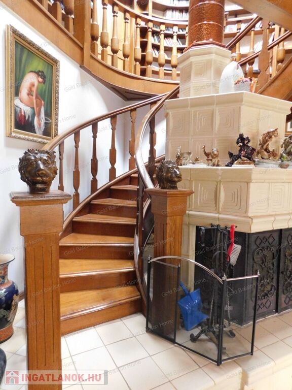 - igényes, stílusos berendezés: az ajtók, lépcsők, korlátok, beépített szekrények mind tölgyfából készültek, egyedi tervezésűek
