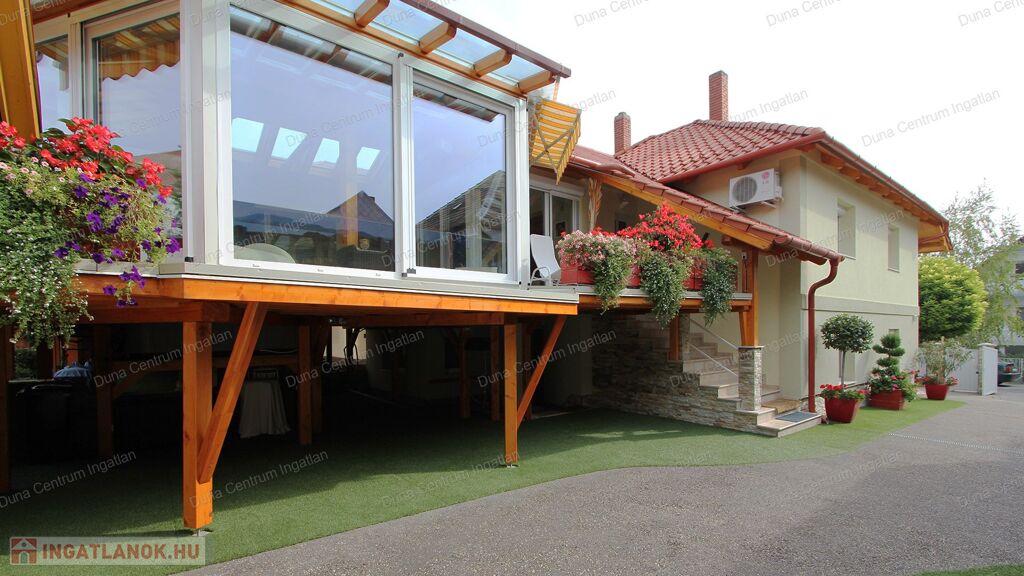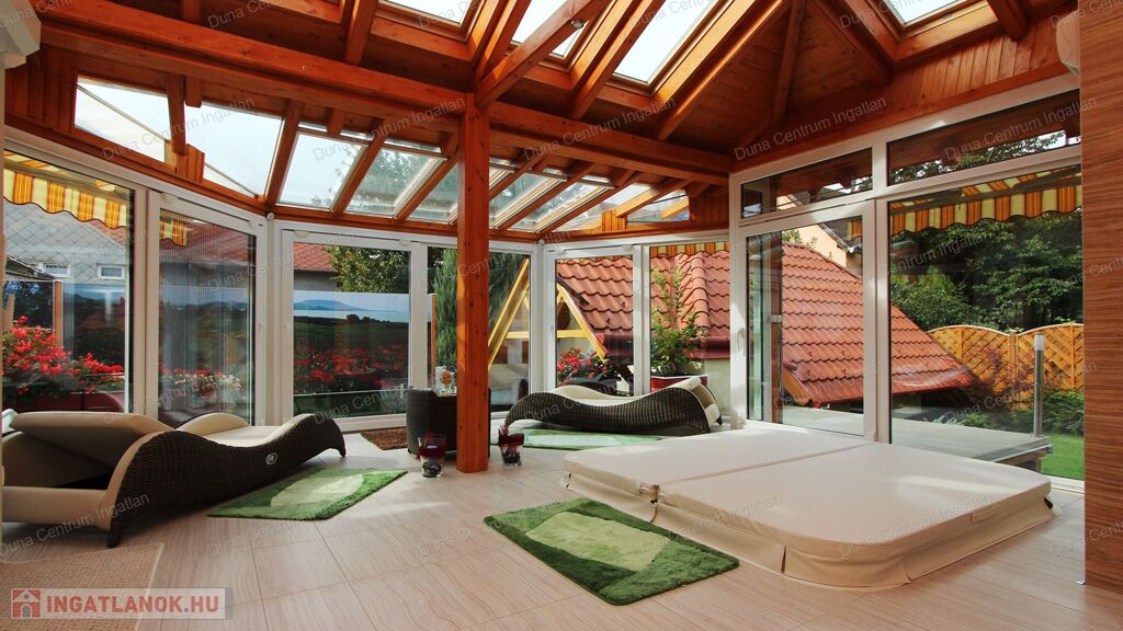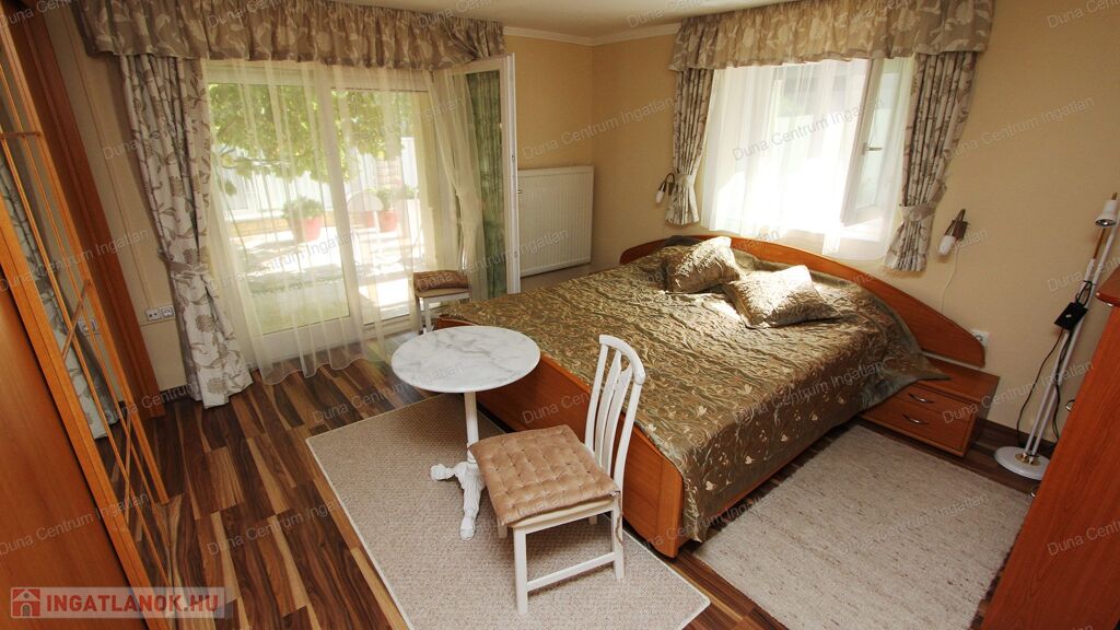 Hévízen a Tófürdőhöz közel teljesen felújított , igényes családi ház eladó. Az ingatlan földszinti részén két kis apartman található , az emeleten pedig egy világos, tágas lakás lett kialaítva. Itt konyha, étkező, nappali, hálószoba, fürdőszoba szolgálja a lakók kényelmét. Innen nyílik az udvar felé a wellness részleg (szauna, sókabin, jacuzzi, zuhanyzó, külső és belső pihenővel.) A fűtés gáz cirkó kazánnal megoldott, a napkollektorok segítségével termelt energia nagy mértékben csökkenti az ingatlan rezsiköltségét. Az udvarban különálló garázs van, a kert rendezett, automata öntözőrendszerrel ellátott.