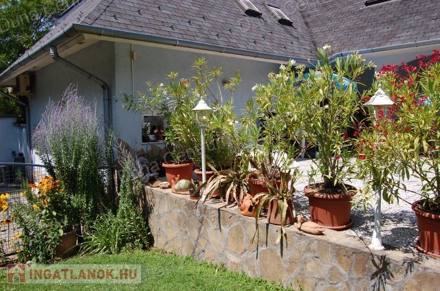 Hévízen csendes, nyugodt helyen a felső körforgalom közelében tágas, két lakrészből álló családi ház eladó. A teljes méret 300m2,ebből az első lakrész 130m2. Itt található 3 szoba, 3 fürdő és egy dupla garázs. A hátsó, nagyobb részben nagy nappali, konyha -étkező, háló, fürdő, gardrób,tároló. A kertben melléképület található alápincézve. Klíma, riasztó. Amennyiben a képek alapján megtetszett az ingatlan jelezze és megnézzük élőben is, nem fog csalódni.