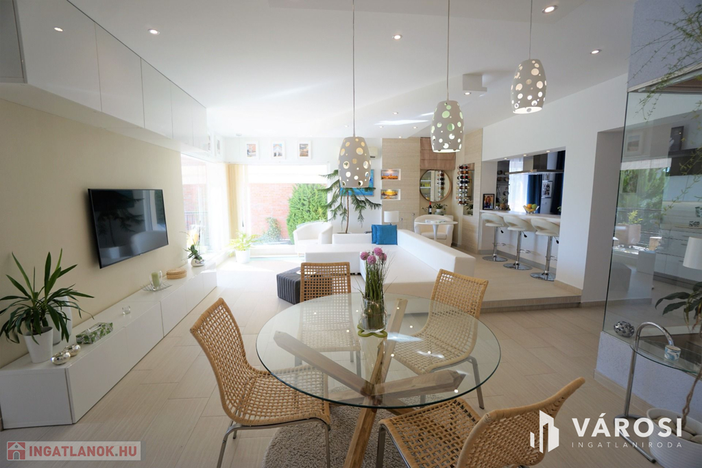 2018-ban, magas minőségben épült ez a különlegesen megtervezett, igényesen kialakított, három szintes 237 nm-es ház, mely egy 612 nm-es telken helyezkedik el. Minden helyiségben elegáns, modern stílus dominál. Ízléses kialakítás és berendezés, magas minőségű beépített anyagok, átgondolt helykihasználás jellemzi.