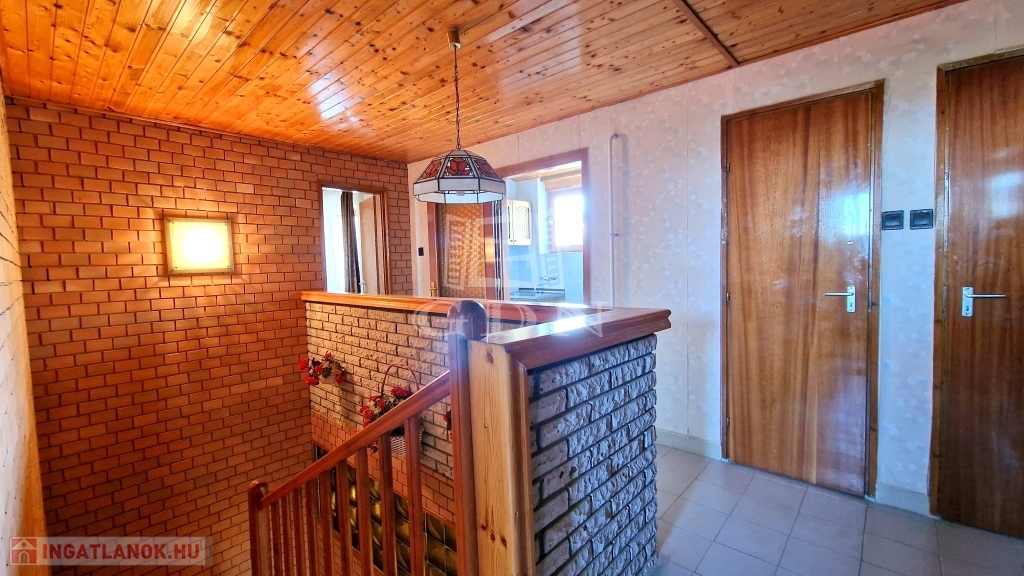 - A tetőtérben 4 hálószoba, 2 zuhanyzós fürdőszoba, 1 konyha és közlekedő folyosó található.