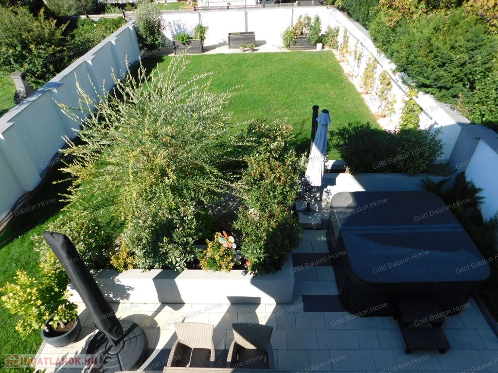 Nagy méretű terasz jakuzzival, infraszauna, kettő emeleti erkély a család kényelmét szolgálja.