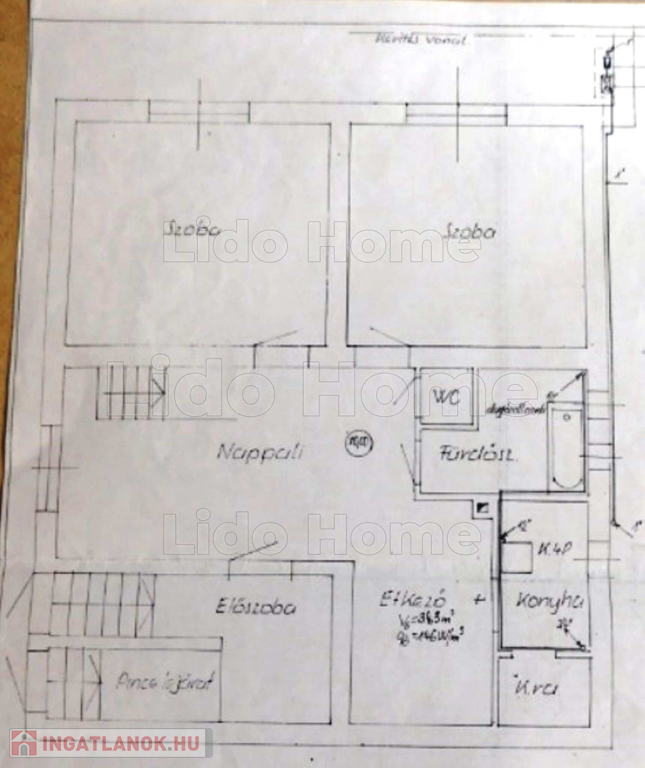 - földszint: lépcsőház - előszoba, konyha-étkező-, kamra, közlekedő, 2 hálószoba, 1 fürdőszoba zuhanyzóval, külön WC,