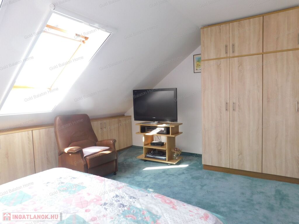 Tetőtéren külön lakrész épült: szoba, fürdőszoba, gardrób helyiségekkel.
